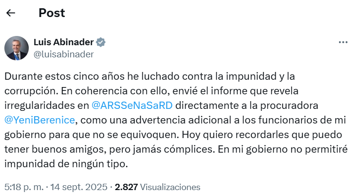El pasado 13 de septiembre, el presidente Luis Abinader dispuso que el superintendente de Salud y Riesgos Laborales (Sisalril), Miguel Ceara Hatton, y el director ejecutivo del Seguro Nacional de Salud (SeNaSa), Edward Guzmán, entreguen ante la Procuraduría General de la República un informe que trata sobre «graves irregularidades» detectadas en SeNaSa.