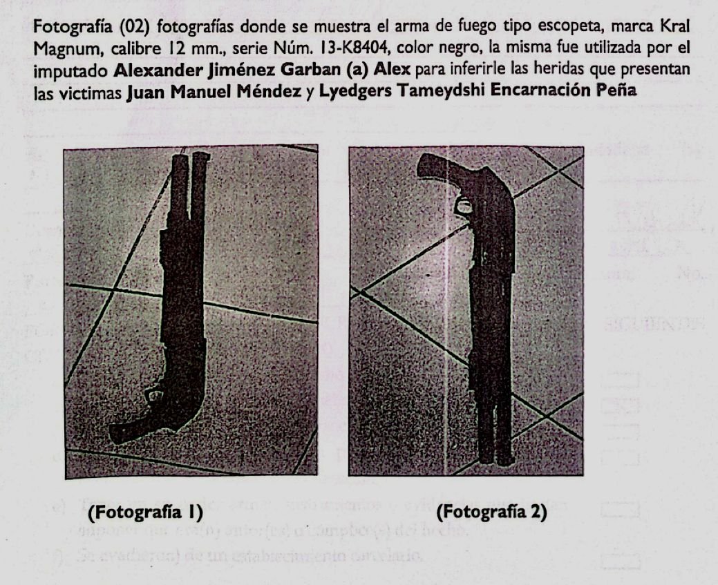 El Ministerio Público presentó cargos por intento de homicidio contra Jiménez Galván, señalando que el imputado habría disparado intencionalmente contra los miembros de seguridad con una escopeta calibre 12.