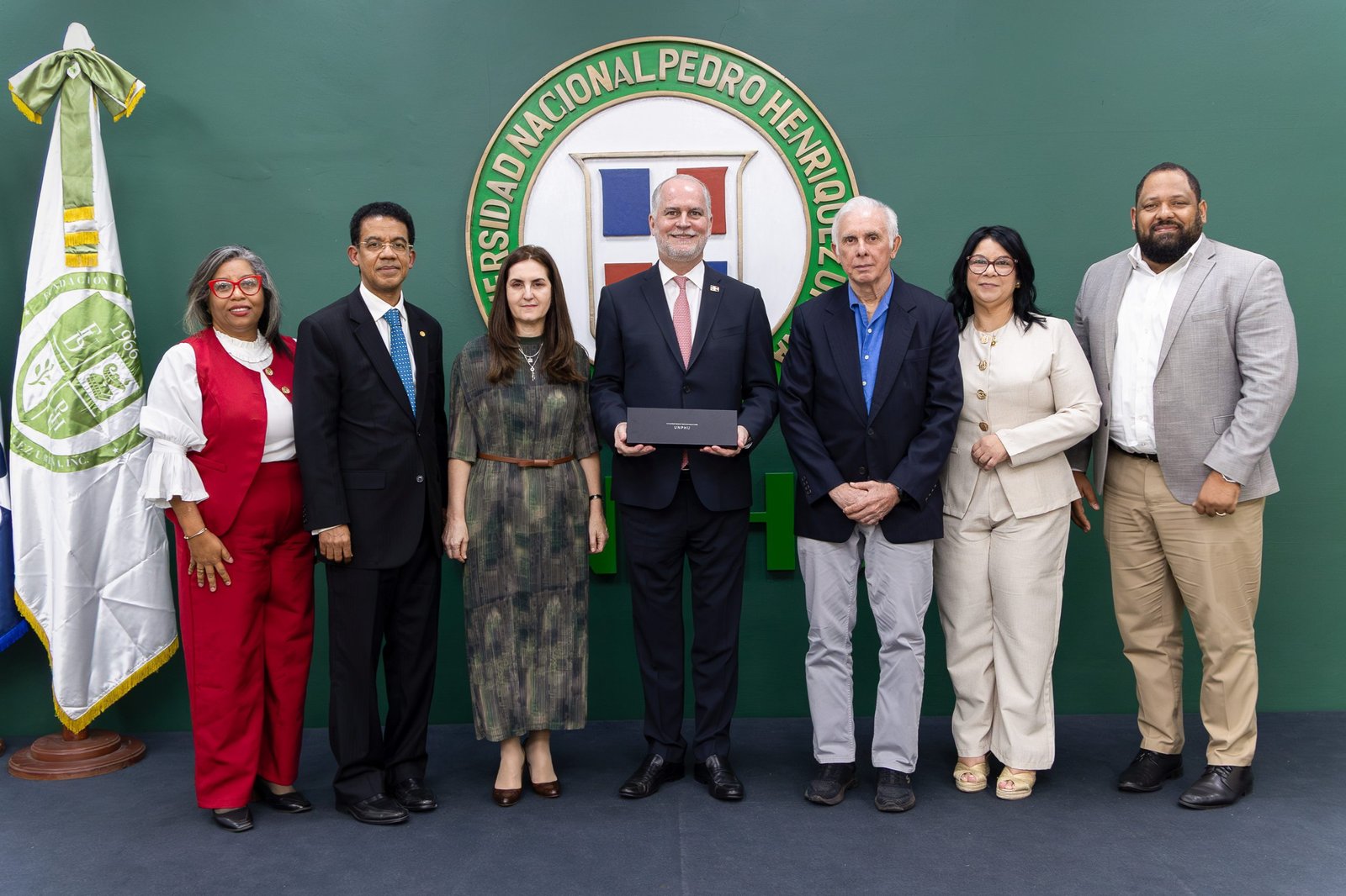 En la actividad participaron familiares de Federico Pellerano Ricourt y autoridades académicas de la UNPHU, entre ellas Patricia Matos, vicerrectora Académica; Claudia Acra, vicerrectora de Investigación, Internacionalización y Vinculación; Walter Lendor, vicerrector de Desarrollo Institucional, Aseguramiento de la Calidad y Proyectos; Francisco Ortega, decano de la Facultad de Ciencias Sociales y Jurídicas; María Mercedes Gonzalo, directora de la Escuela de Negocios; y Daysi Pérez, coordinadora de la Carrera de Contabilidad y Auditoría.
