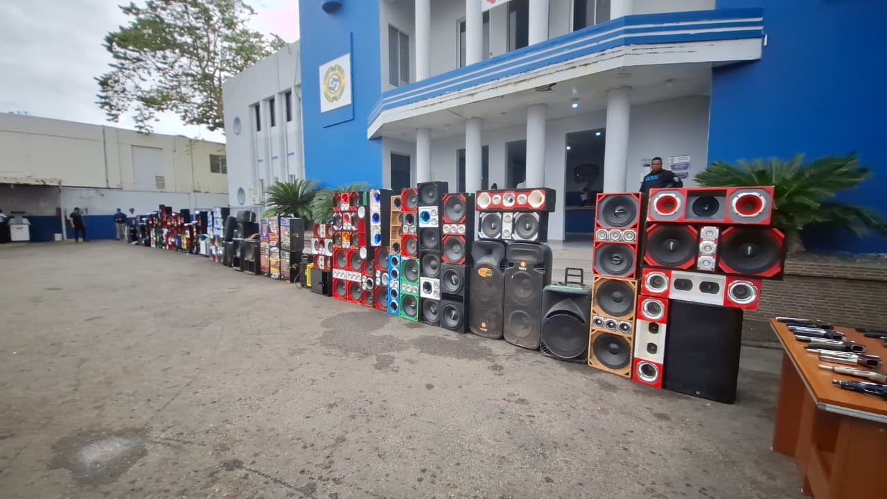 SAN PEDRO DE MACORÍS.– La Policía Nacional entregó este viernes en dicha ciudad más de 100 equipos de contaminación sónica, así como armas de fuego y motocicletas, a distintas instituciones del Estado, incluyendo la Procuraduría, el Ministerio de Medio Ambiente y la Dirección General de Seguridad de Tránsito y Transporte Terrestre (Digesett).