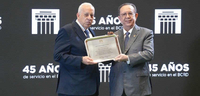 SANTO DOMINGO.- El gobernador del Banco Central de la República Dominicana (BCRD), Héctor Valdez Albizu, presidió la ceremonia de reconocimiento a 169 funcionarios y empleados por su tiempo de servicio a la institución, los cuales estuvieron encabezados por los 45 años cumplidos de Manuel Fernando Gómez Copello, que en la actualidad desempeña el cargo de subgerente de Recursos Humanos.