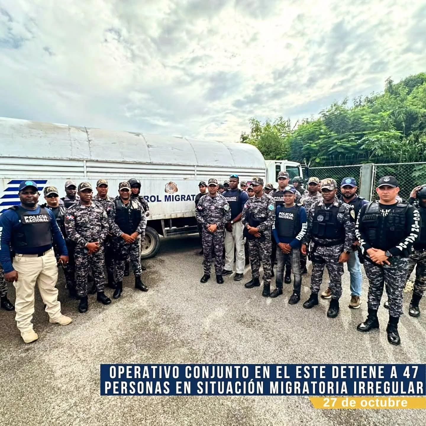 LA ROMANA.- Un total de 47 personas situación migratoria irregular fueron detenidas este lunes durante un amplio operativo realizado en varios sectores bajo la jurisdicción de la Dirección Regional Este de la Policía Nacional.