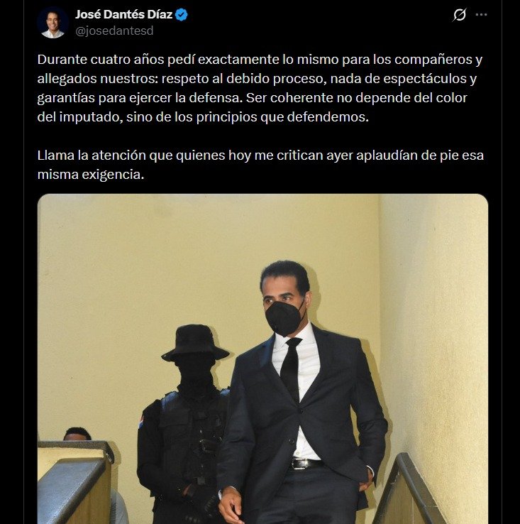 A través de su cuenta de X, Dantés afirmó: “Ojalá puedan enfrentar su proceso en libertad y preparar su defensa técnica, como corresponde en un Estado de derecho, porque la justicia no se hace a golpes de espectáculo”.