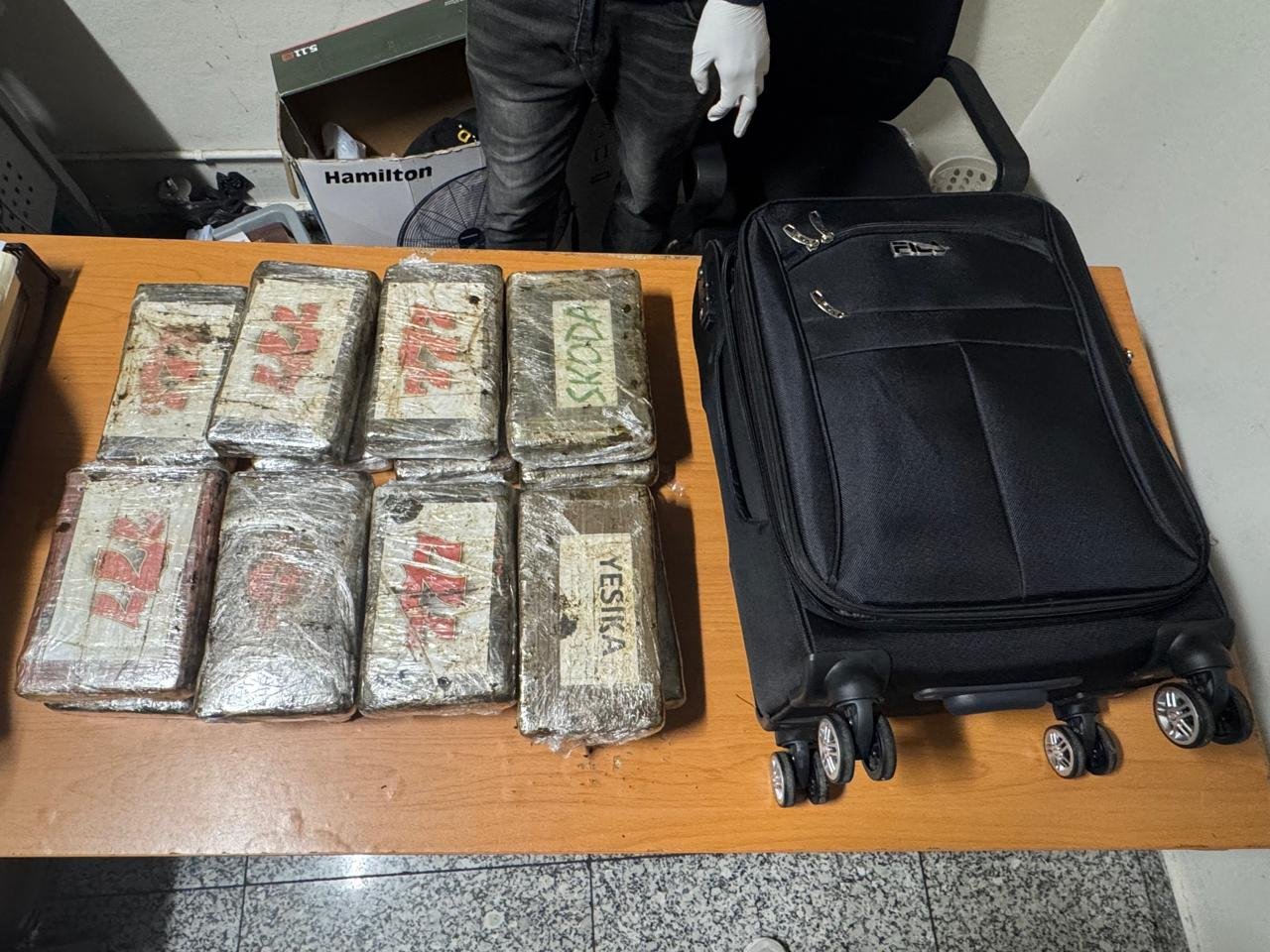 Las unidades operativas, bajo la coordinación del Ministerio Público, verificaban los equipajes en el área de salida de la terminal, cuando se observaron imágenes sospechosas, a través de una de las máquinas de rayos X, en el interior de dos mochilas e igual número de maletas.