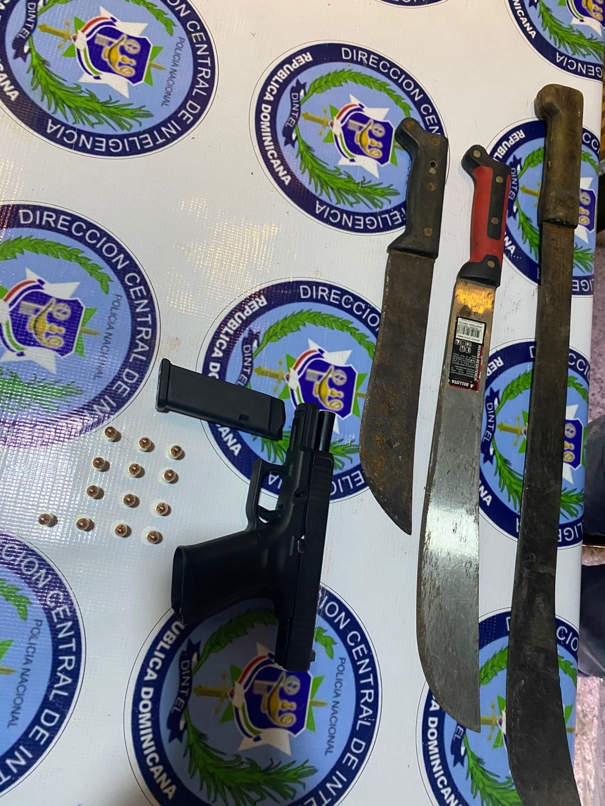Según el comunicado, durante uno de los allanamientos efectuado en una residencia del sector Las Carmelitas, fue arrestado Joel David Jerez Hernández, de 35 años, comerciante, a quien se le ocupó una pistola marca Glock 19, calibre 9mm, serie No. AFKN715, con su cargador y 13 cápsulas, sin ningún tipo de documentación, además de tres colines.