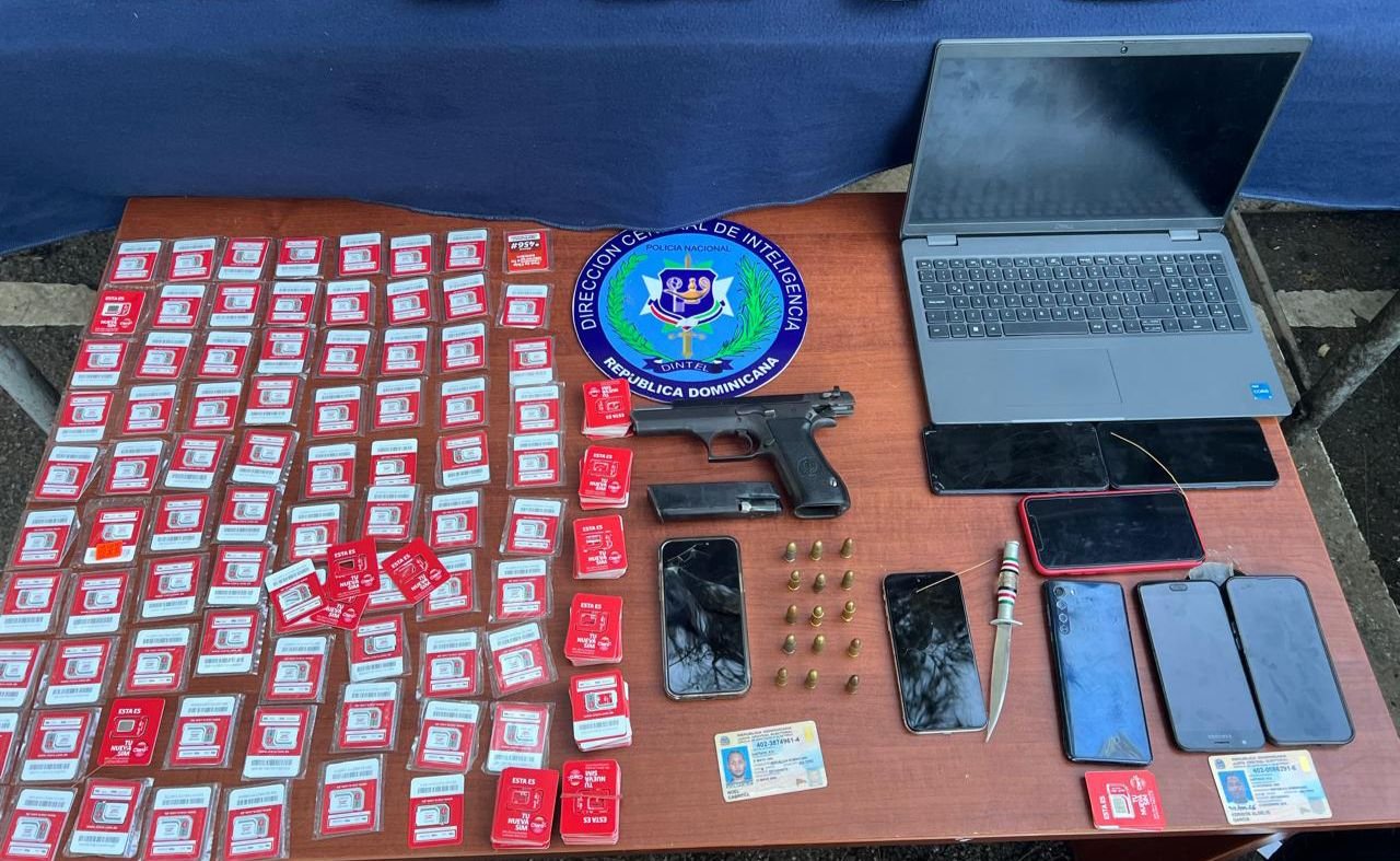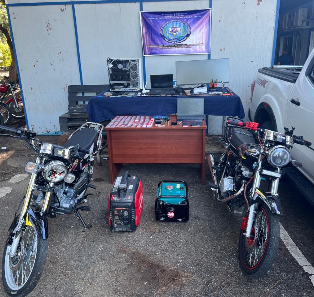 De acuerdo con la información policial, en el proceso de intervención, las autoridades ocuparon 33 celulares, ocho armas blancas, una pistola sin documentación con 15 cápsulas, dos motocicletas, una camioneta Nissan blanca año 2024, dos plantas eléctricas, una computadora utilizada para estafas electrónicas, dos laptops, dos radios de comunicación, un monitor, un DVR, un distribuidor de internet y más de 200 chips de una compañía telefónica.