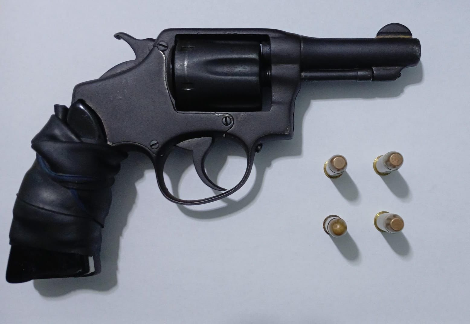 La cuarta arma de fuego en un amplio recorrido preventivo en la calle principal La Hacienda Estrella, un individuo con perfil sospechoso tenía en su poder un revólver de marca y numeración no legible. La quinta una pistola de marca y numeración no legible con su cargador y dos capsulas calibre 380 y tres cápsulas adicionales.