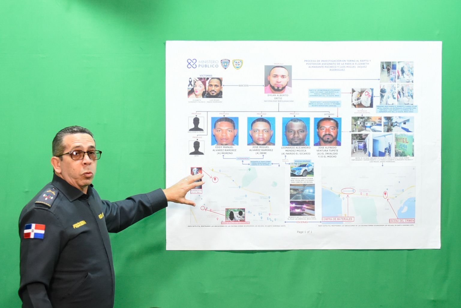 Además, el prófugo Dylan Alberto Ortiz, de nacionalidad estadounidense, fue captado por las cámaras de seguridad de la sucursal de un supermercado en Boca Chica, cuando compraba los materiales utilizados para torturar y quitar la vida de la pareja en mención.