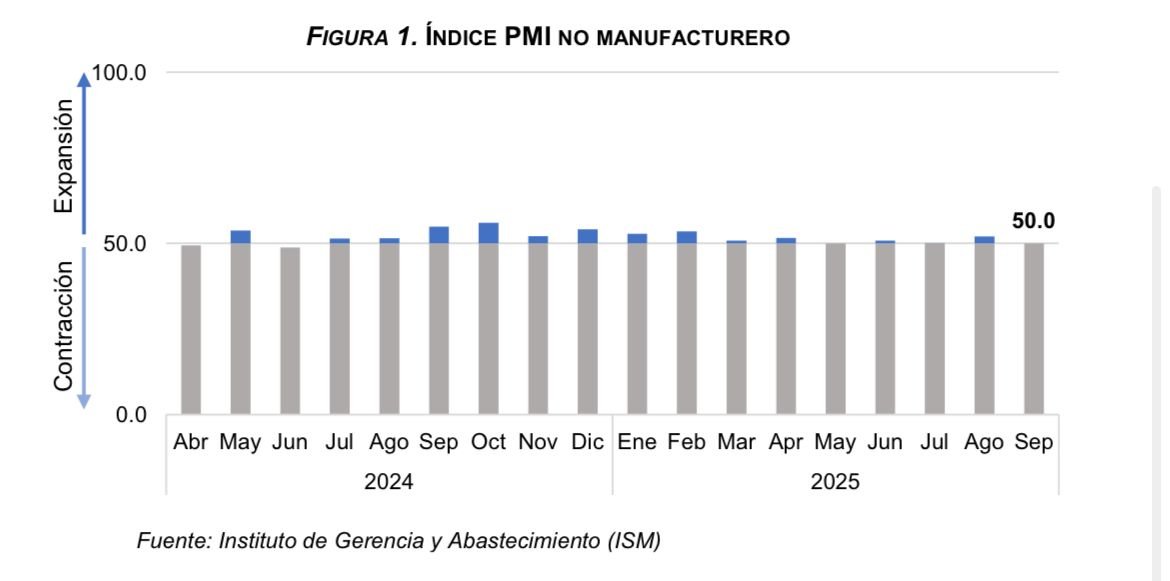 Por su parte, el índice de gestores de compras (PMI por sus siglas en inglés) no manufacturero del Instituto de Gerencia y Abastecimiento (ISM por sus siglas en inglés) registró un valor de 50.0 en el mes de septiembre, por debajo del 51.7 observado en agosto; no obstante, indica que sigue habiendo dinamismo en el sector servicios, en el cual se emplea gran parte de la diáspora dominicana.